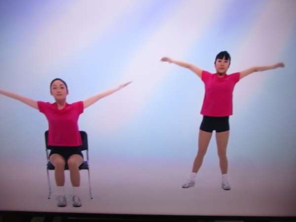 ラジオ体操で体を動かしていきますグッド (上向き矢印)るんるん (音符)