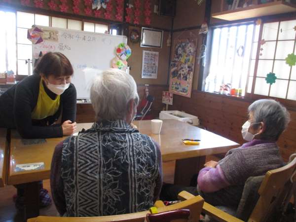 皆さんの健康状態を伺いながら毎朝のバイタルチェックを行っております
