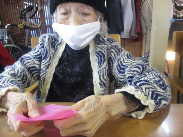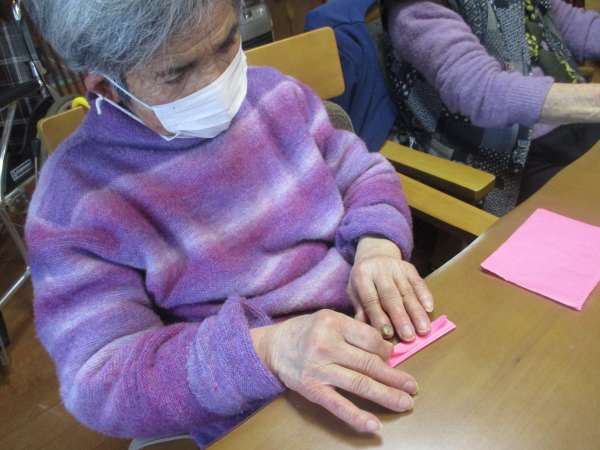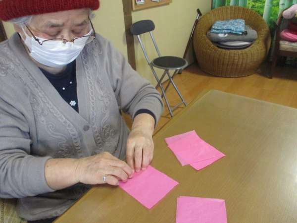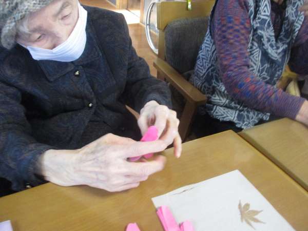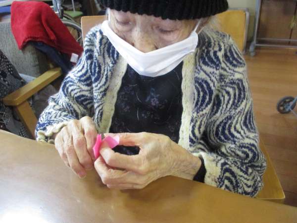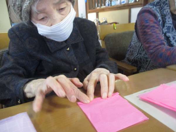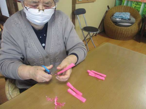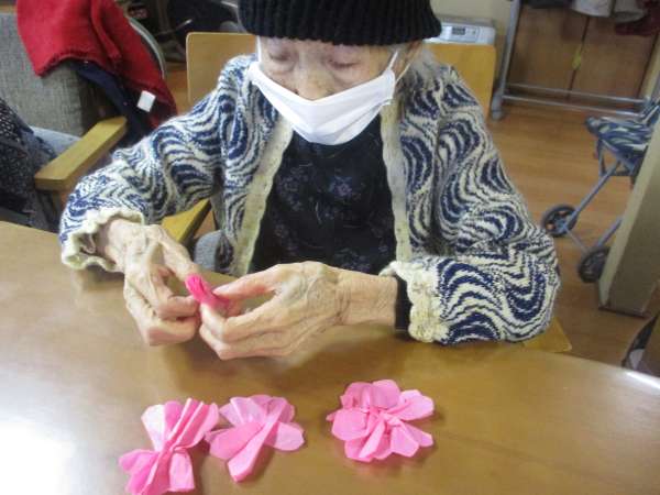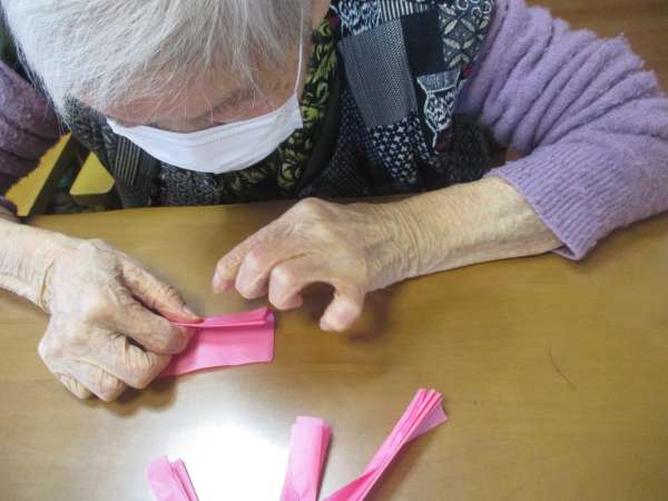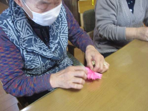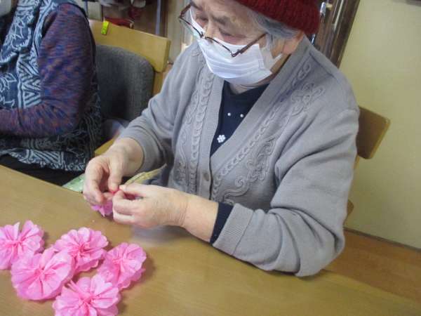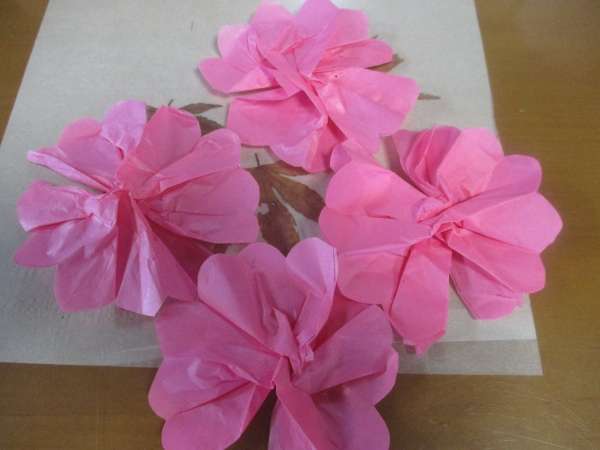 本日は、壁画で使う桜をお花紙で作って頂きます