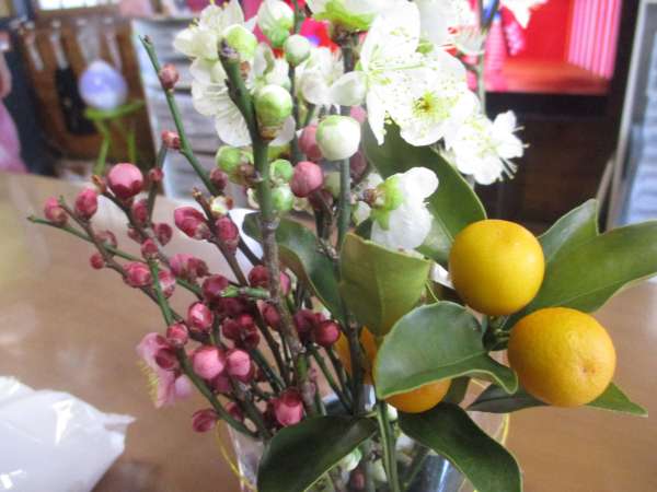 お母さまから、ご自宅の庭に咲いているお花やキンカンを使った