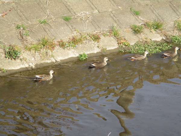 今日はカルガモちゃんも並んで泳いでいましたわーい (嬉しい顔)