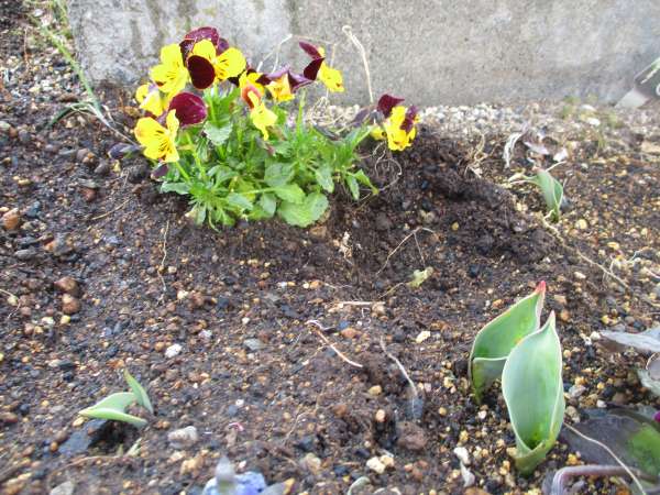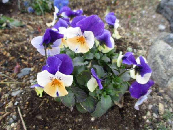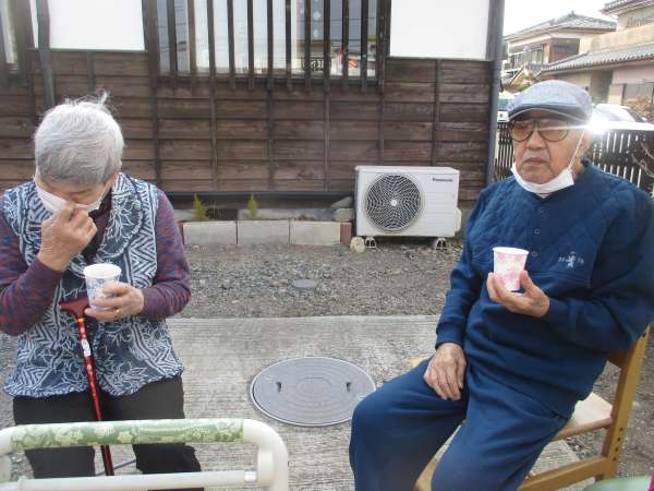庵の前で、お花を眺めながら水分補給しましたハートたち (複数ハート)