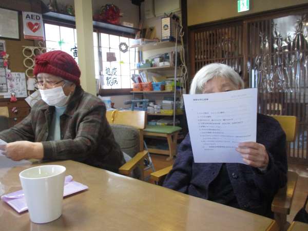 今日のレクで使うものをお配りすると