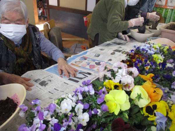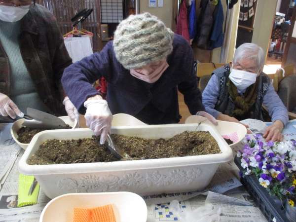 今日のレクリエーションは園芸です