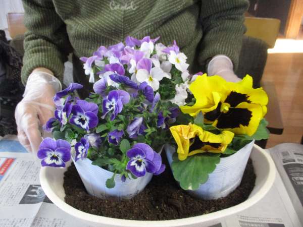 キレイなお花の鉢植え完成です