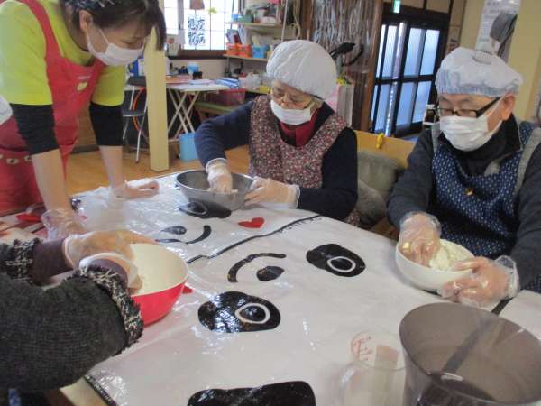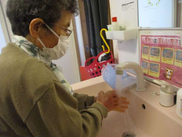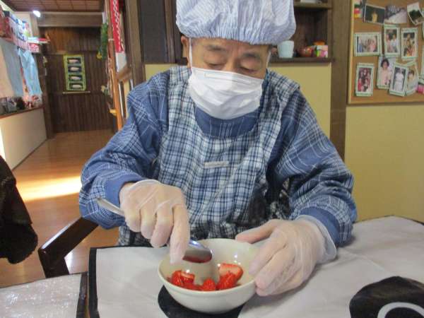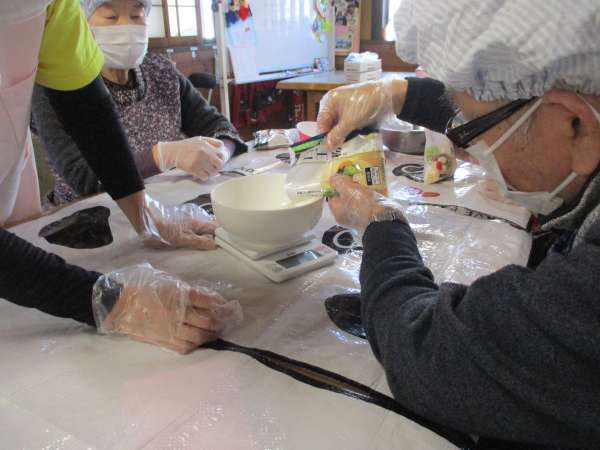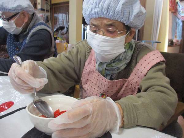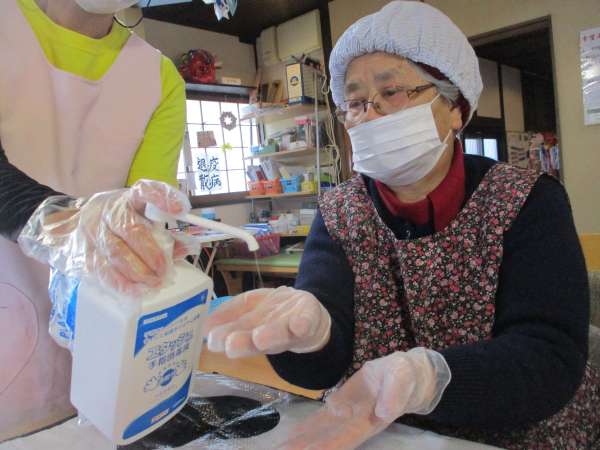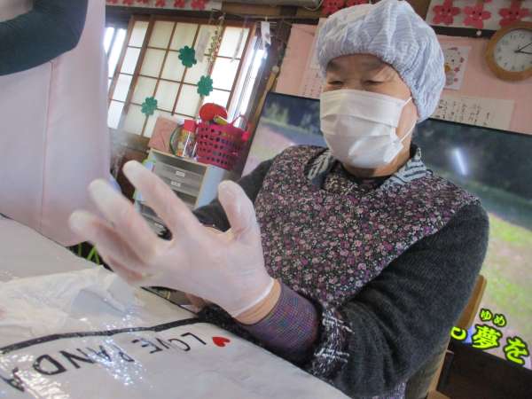 エプロン&帽子&手袋をした後に消毒をしてから開始します