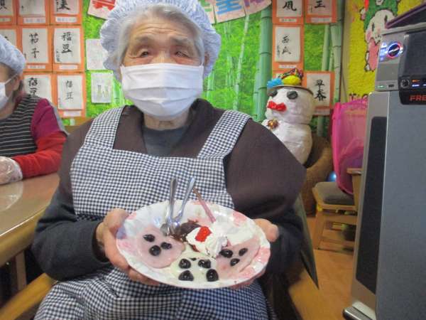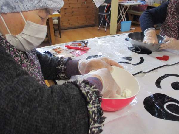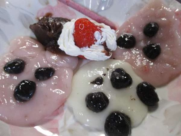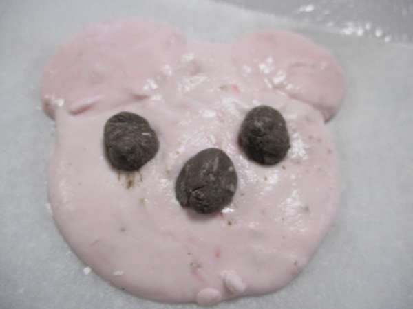 イチゴを入れてピンク色になった生地をアニマル風にしました