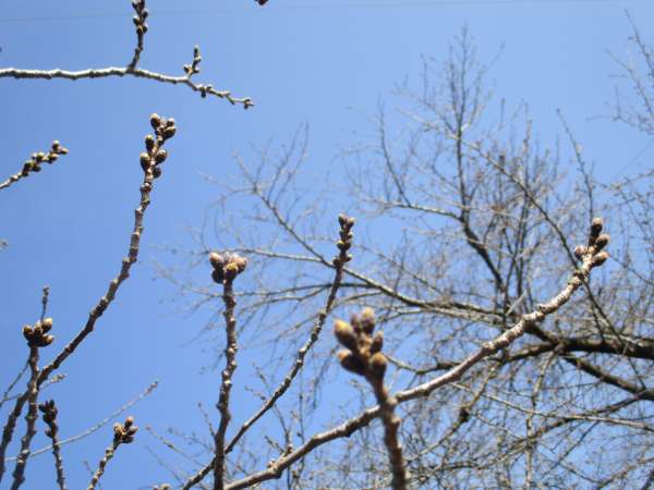 真心の幸望庵前の桜並木のつぼみの生長は順調に進んでいます