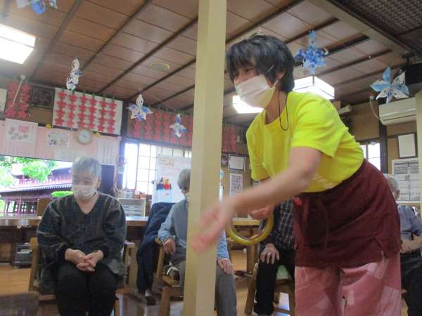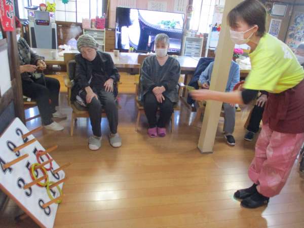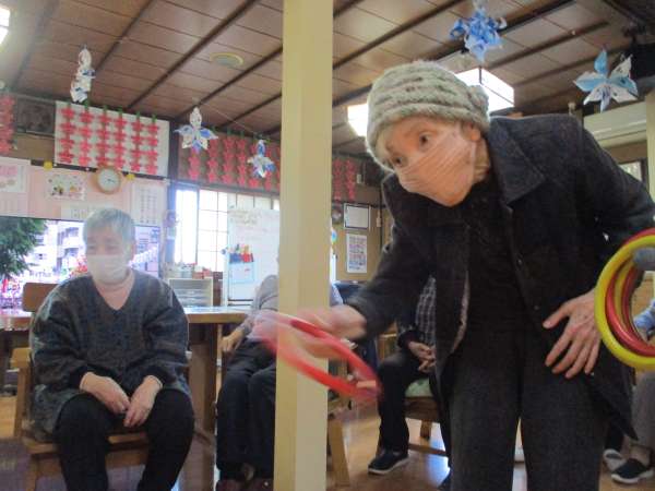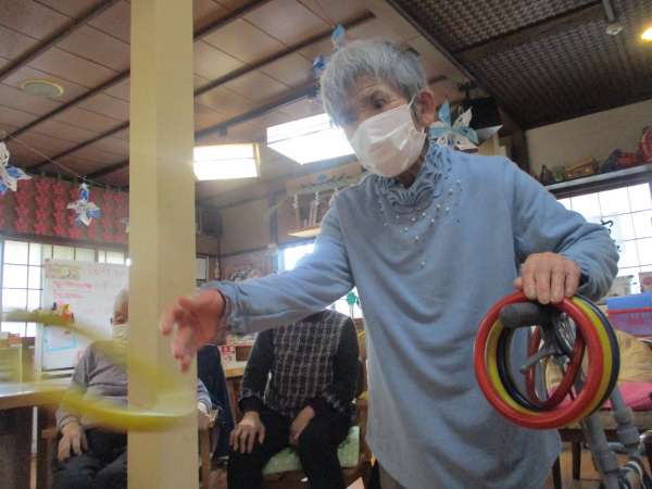 本日の午後レクは輪投げ