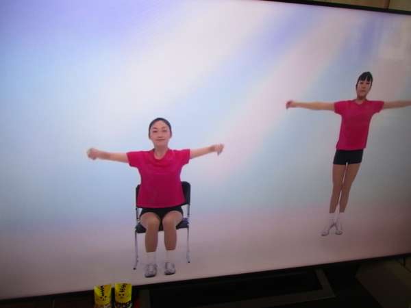 音楽体操も行うので、午前中の体操は約30分間行っております