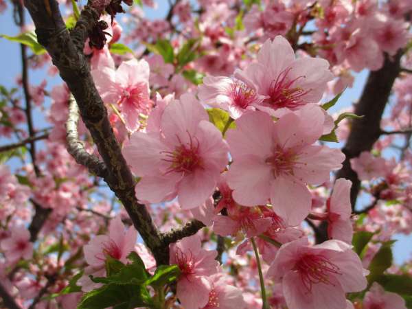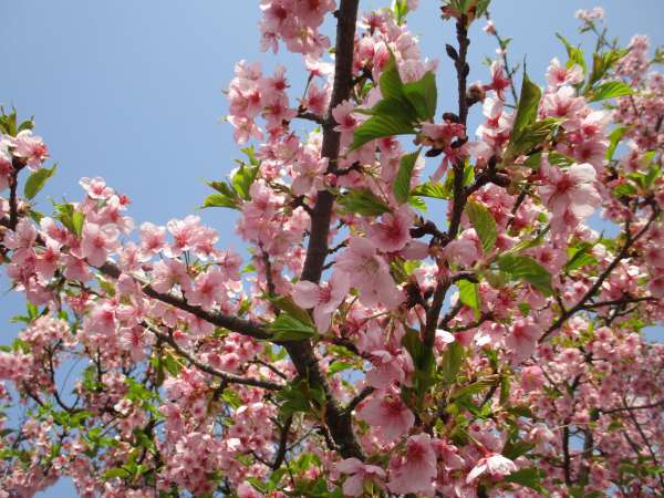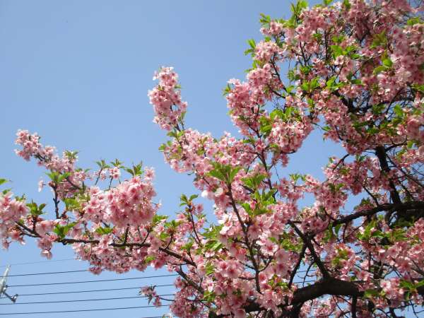 ここ数日の温かさで河津桜は早くも葉桜も見えはじめています
