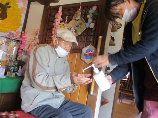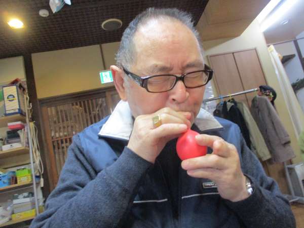 風船を膨らませたり、手指を使った簡単な動作ですが