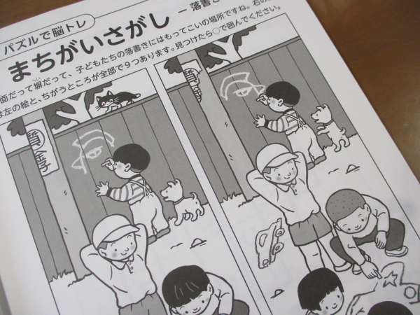 左右のイラストを見比べながら9つの間違えを時間を決めて行い