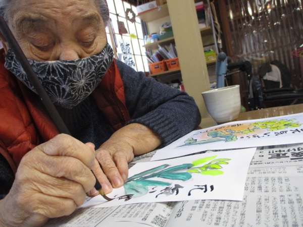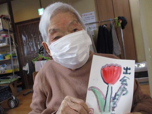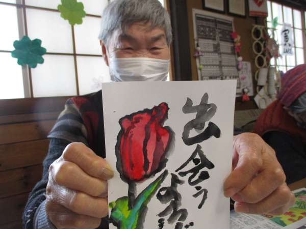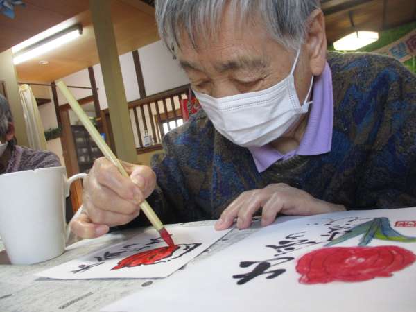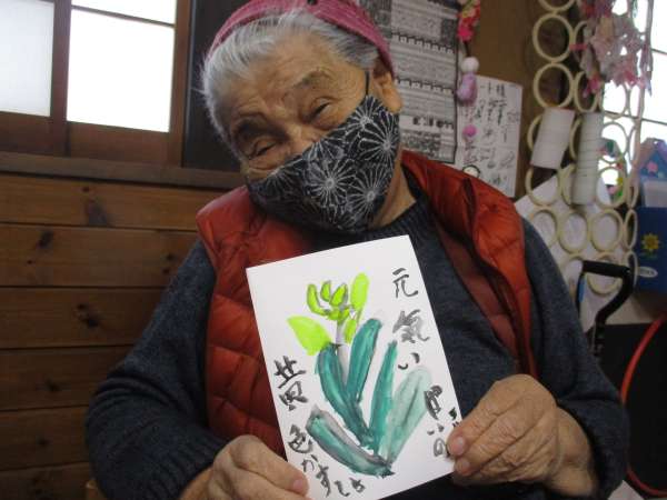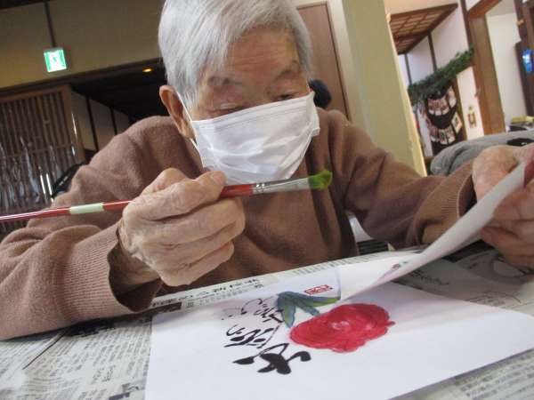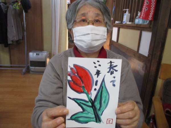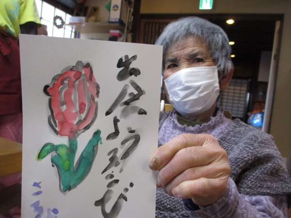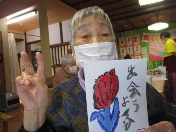 真心の幸望庵では毎月 レクリエーションにて季節の絵手紙を行い