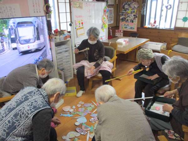 本日のレクリエーションは釣りゲーム<゜)))彡