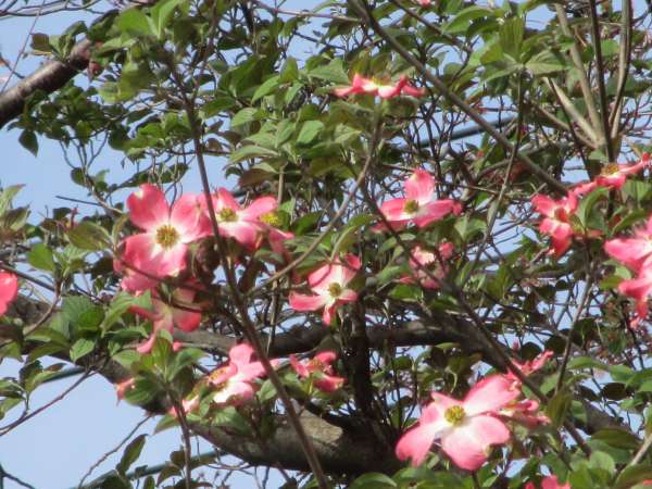 桜の後は、八重桜やハナミズキが皆さんのお散歩を楽しませてくれています