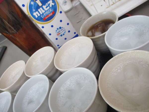 冷たい飲み物で水分補給
