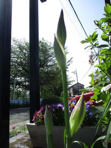 真心の幸望庵の庭先ではジャーマンアイリスがスクスクと育ち