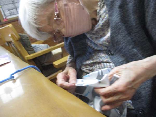 まだ作っていない巾着袋制作をお昼休み中にやっちゃいましょう