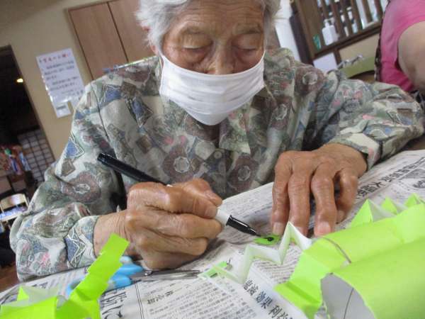 本日の午後レクは春に皆さんと制作した壁画を