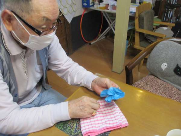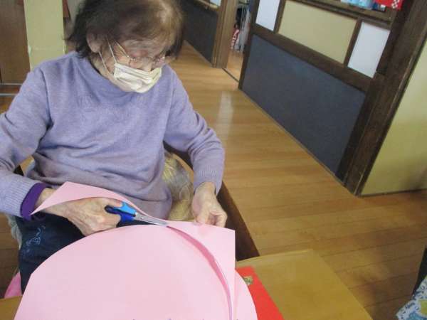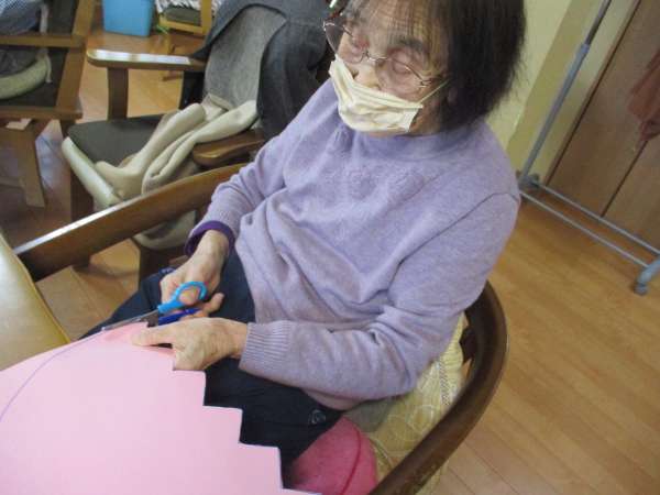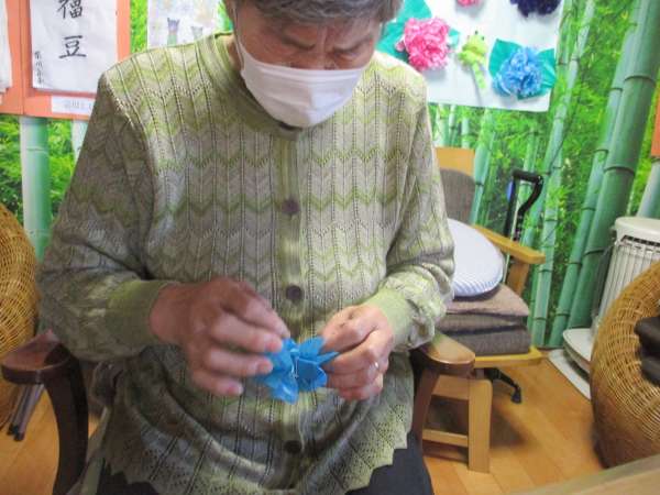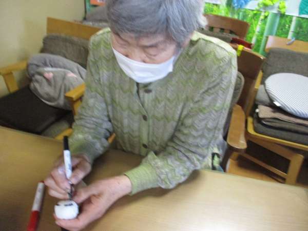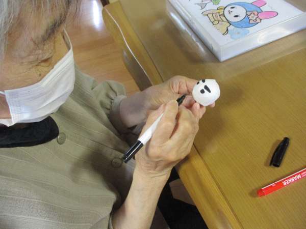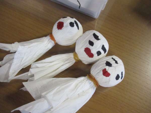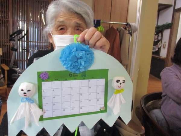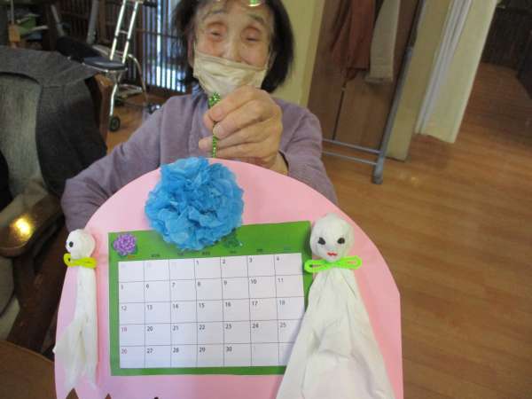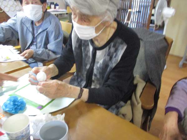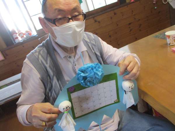てるてる坊主を沢山作ったので、デイルームに飾らせていただきます
