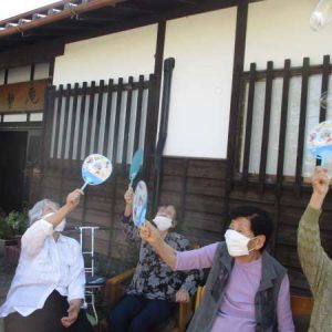 うちわであおいで