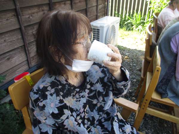 外で水分補給