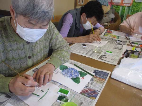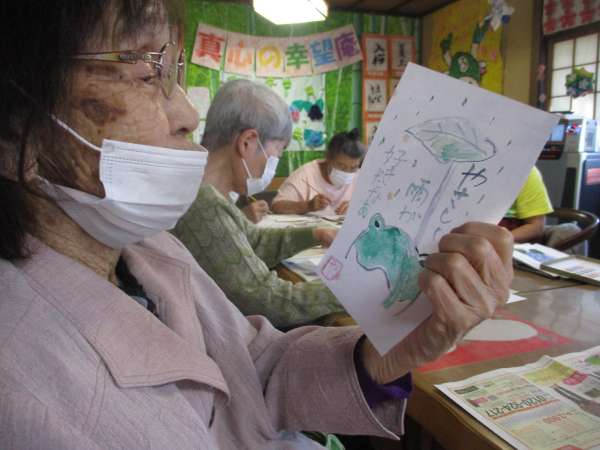 本日のレクリエーションは絵手紙