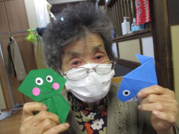本日の午後レクは折り紙工作でデイルームを初夏の飾りつけ