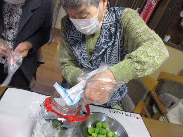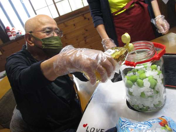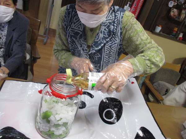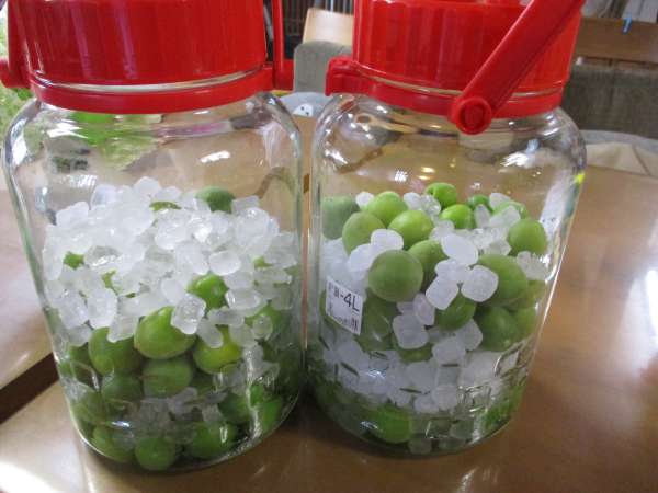 氷砂糖と、梅を交互に入れて