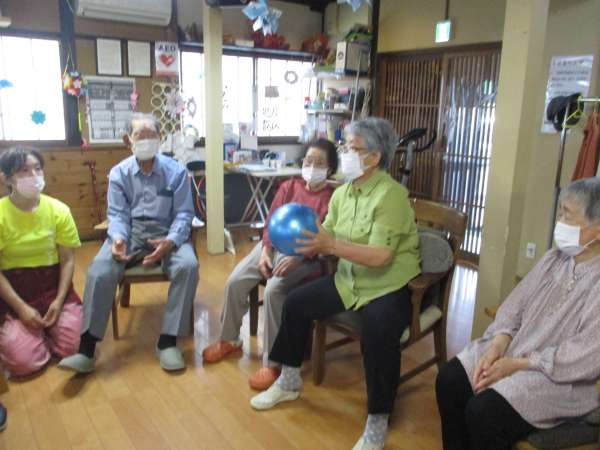 ボールのパス回しは皆さん円になって座って頂きながらのボール回しで
