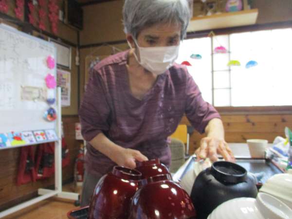 昼食後に、食器拭きをして下さいました