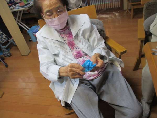 お花紙をくしゃくしゃにして