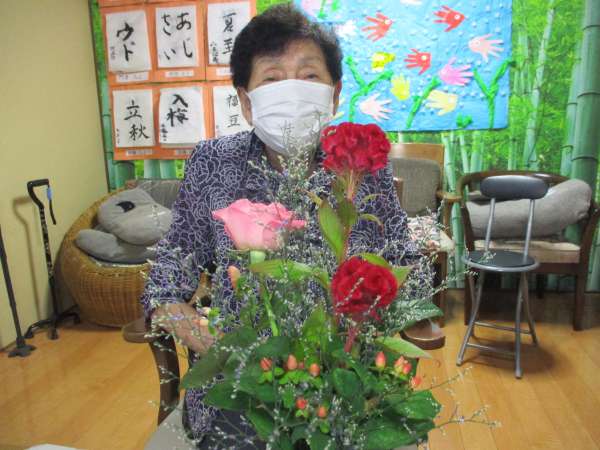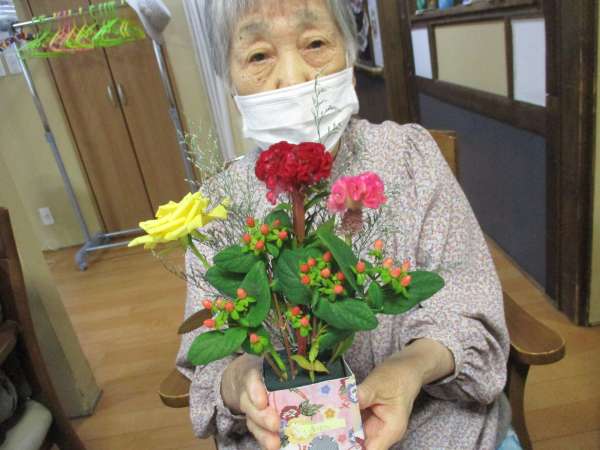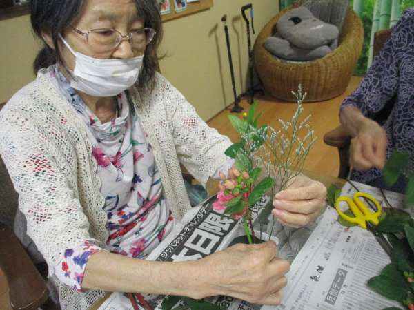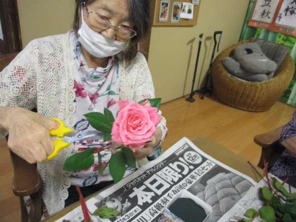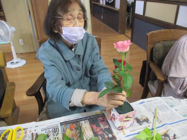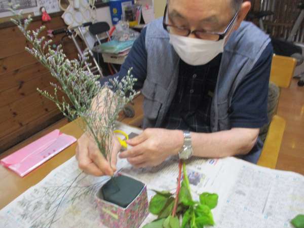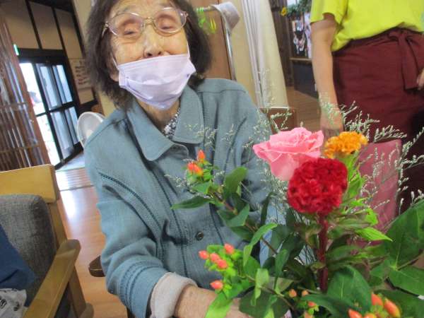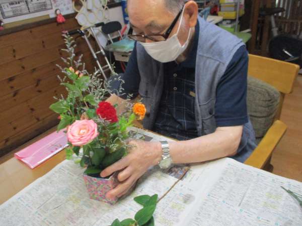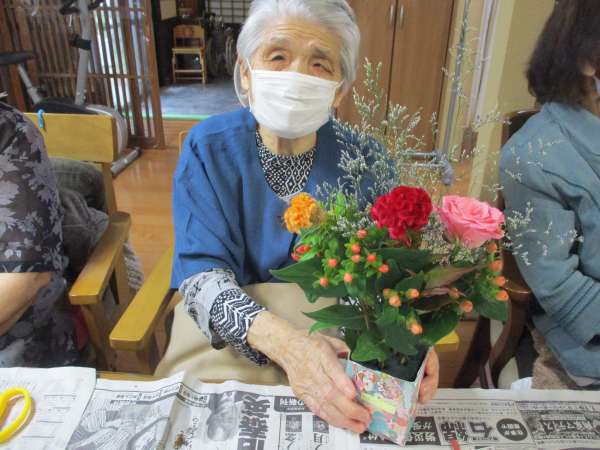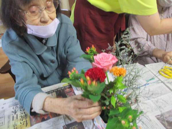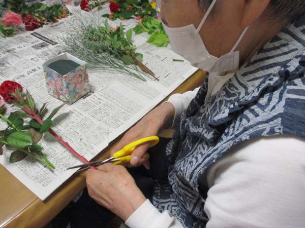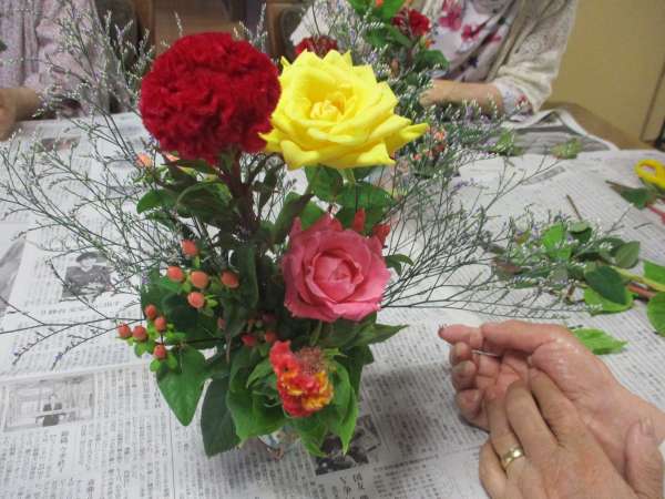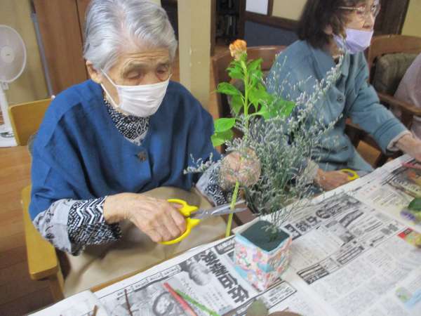 皆さん、大好きな生け花で嬉しそう