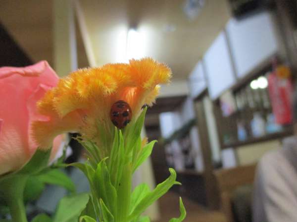 母のお花に、てんとう虫が付いていました