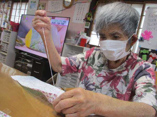 母は先日より皆さんにやって頂いているお裁縫でティッシュカバー作り