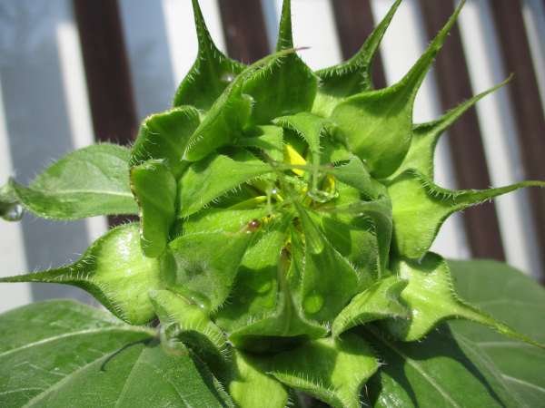 今朝は蕾の中の黄色い花びらが少しだけ見え始めました