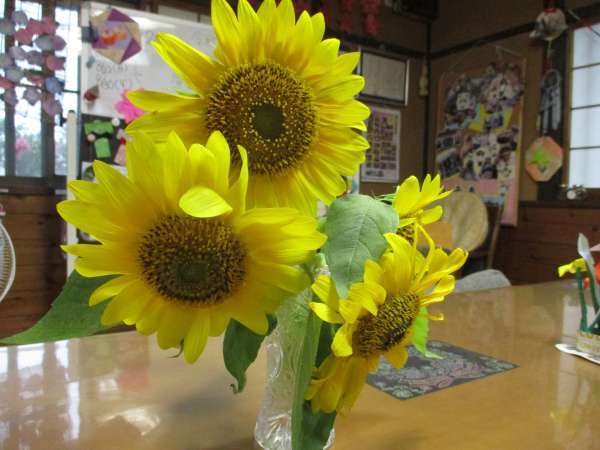 ホールにも、元気カラーのヒマワリ🌻🌻🌻