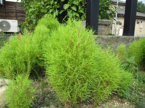 庭のコキアが大きく成長しています