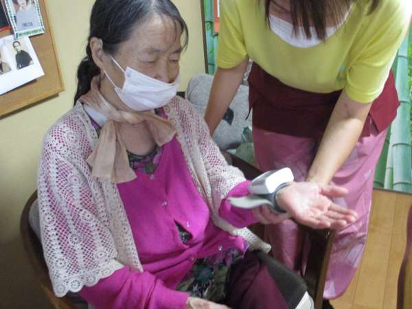 お一人づつ体調の確認を行います。