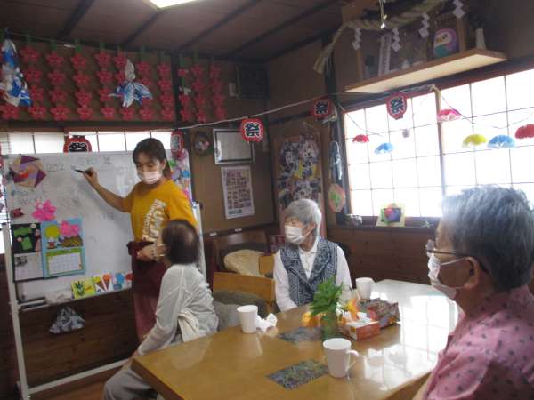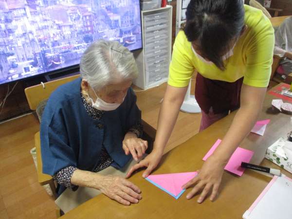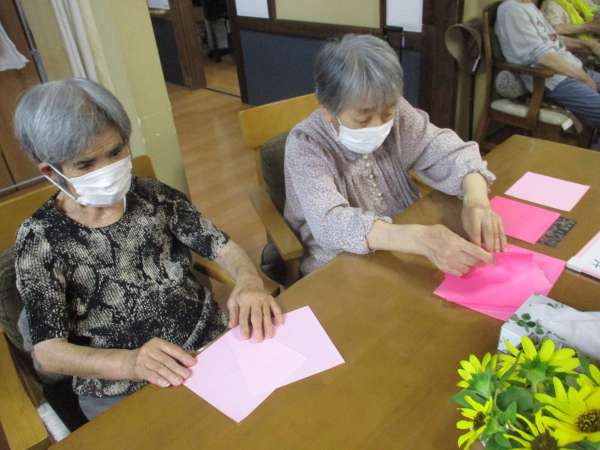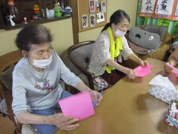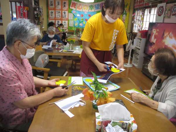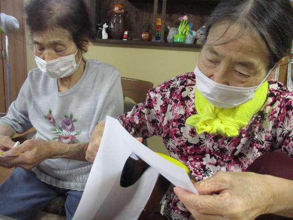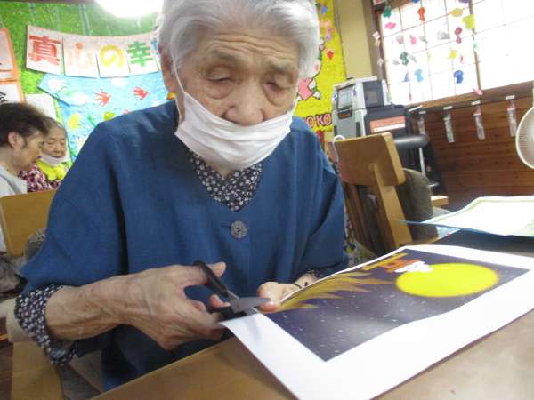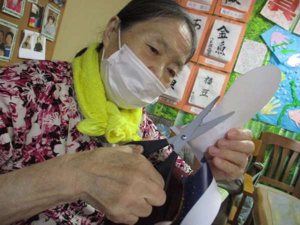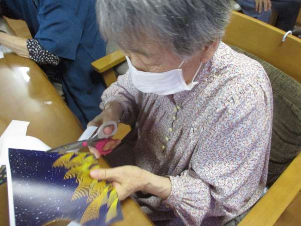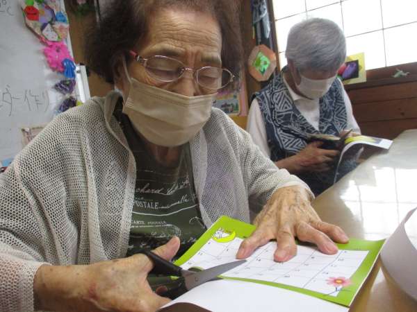 しみじみ会話を楽しみながら、手を動かします✂