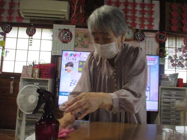 テーブルの消毒