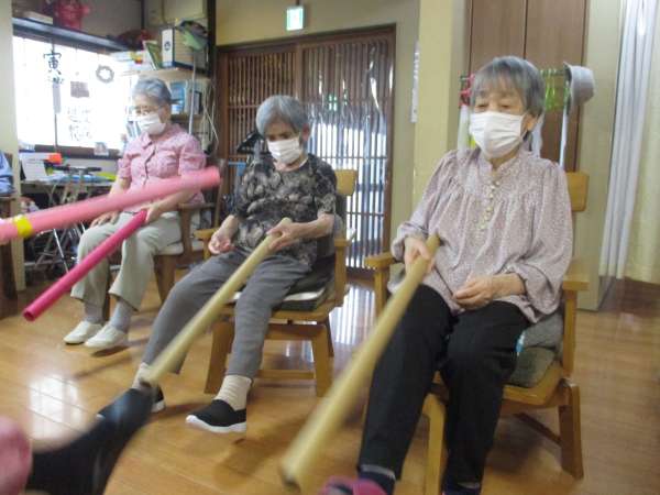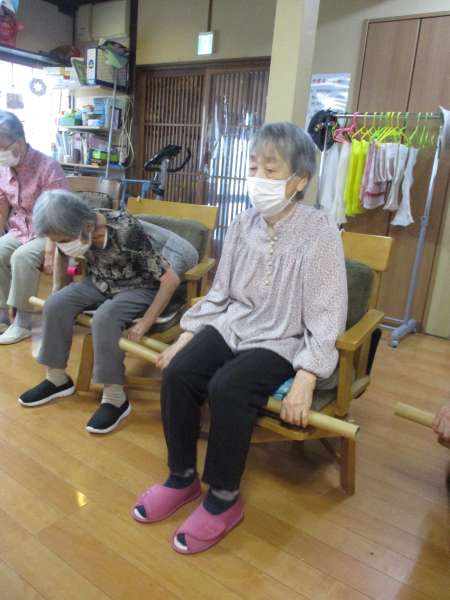 体操は、足腰に痛みがあったら無理せず座位にてしっかり行います