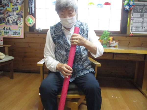 次は、真ん中を持ってグルグル回して手首の体操