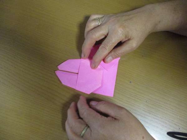 まずは、ウサギの顔を折っていきます