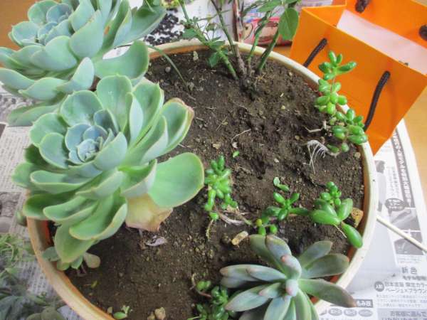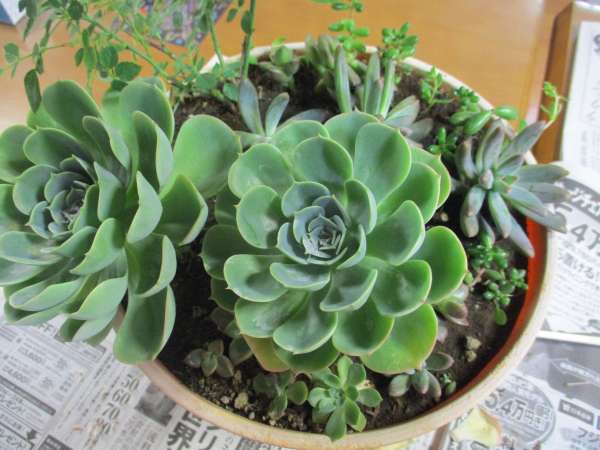 ツルツルして可愛いらしい、この多肉植物を鉢に植えていただきました
