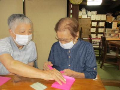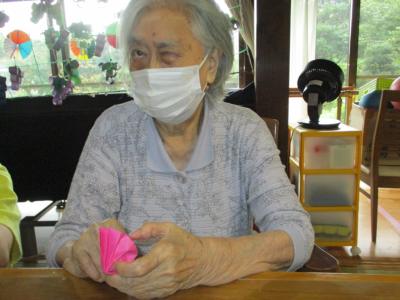 お花紙を手に取り、五枚を数える皆さん・・・