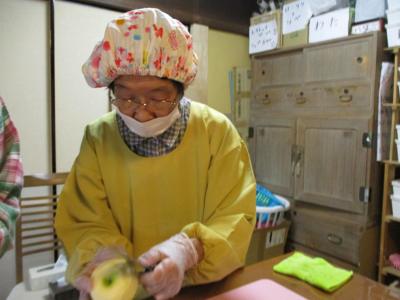 皆さんで一斉に取り掛かり、リンゴを切る音がリンゴの香りと共に