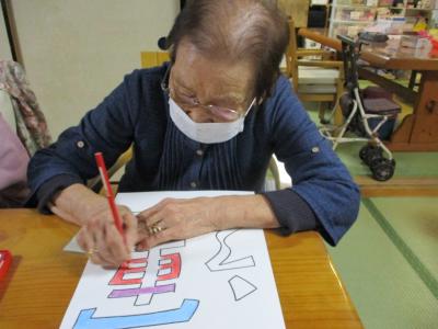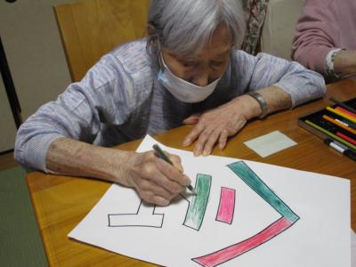 一画一画色を変えてカラフルに塗っています