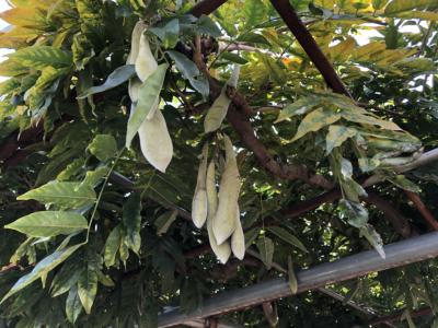 藤棚で日向ぼっこをしていたらそら豆みたいなものを発見